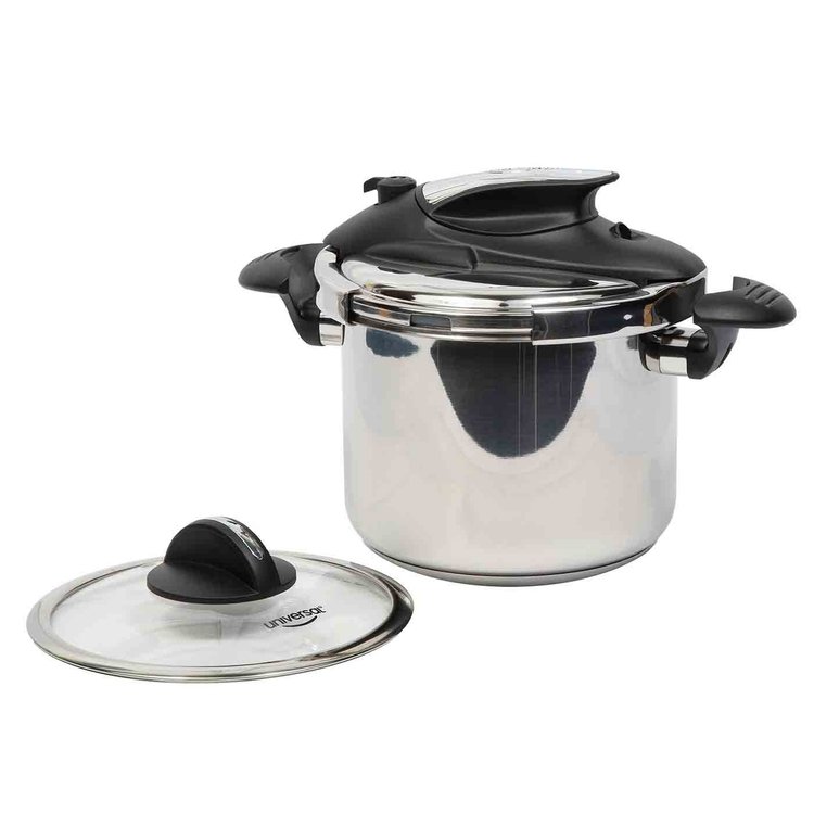 OLLA PRESION ABRE FACIL EN ACERO TAPA VIDRIO 6 LITROS